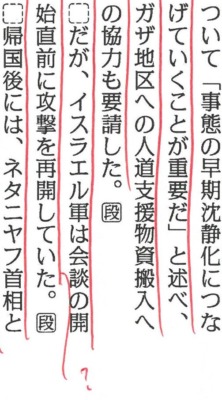 こちらは2年前。当時の岸田文雄首相が中東を訪問し、イスラム組織ハマスとイスラエル軍の戦闘を巡って各国首脳と協議したことについて書かれたものです。首相はイスラエルのヘルツォグ大統領との会談で戦闘の一時休止などを求めたものの、イスラエル軍は会談の開始直前に攻撃を再開していたというくだりが。会談の時間と攻撃開始の時刻、調べれば調べるほど、会談前には思えません。問い合わせたところ、筆者の勘違いということがわかりました。取り違えや勘違い……恐ろしいのですが、だれにでもあることです。校閲は先入観なく冷静に丁寧に調べて確認するしかありません。
