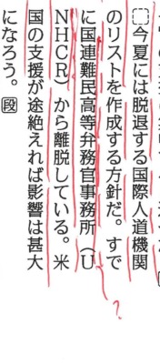 今年7月、米国のトランプ政権が対外援助機関である国際開発局を廃止すると発表したことについて書かれた文です。国連難民高等弁務官事務所(UNHCR)も離脱くらいしていそうなトランプ政権ですが、過去記事をさがしても、ネット検索してみても、拠出金を削減したことは出てくるのですが、離脱については見つかりません。調べるうち、国連人権理事会から離脱したという記事は見つかりました。毎日新聞ではほとんど使わないその略称は「UNHRC」! 国連人権理事会のUNHRCと国連難民高等弁務官事務所のUNHCRを取り違えたのかも……と問い合わせたところ、やはり誤りで、この部分を削ることになりました。