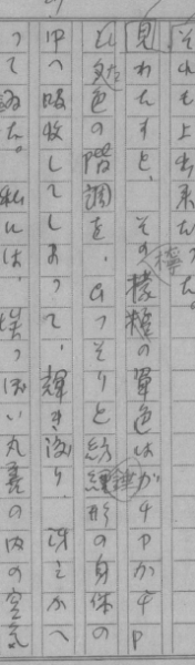 その草稿の、引用部分につながる文章を見ると「階調」はしっかり確認できます。しかし「紡錘」の「錘」の字も最初「かねへん」ではなく「いとへん」で書いたのが訂正されています。訂正したのは本人ではなく別の人の字にも見えます。
