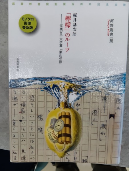 この表紙は武蔵野書院から出ている「梶井基次郎 『檸檬』のルーツ――実践女子大学蔵 『瀬山の話』」です。「檸檬」の字が違っていますね。