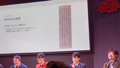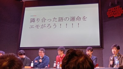 10月4日、東京・渋谷で開かれた人気イベント「国語辞典ナイト」のリポート3回目です。ゲストはYouTubeチャンネル「ゆる言語学ラジオ」の水野太貴さん、堀元見さん。「私しか知らない国語辞典の秘密」のテーマで、これまで3人の発表に対して堀元さんが次々突っ込みを入れてきましたが、まだまだ続きます。