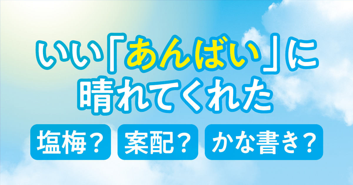 いい「あんばい」に晴れてくれた――カギカッコの中、どの表記がなじみますか? 読み込んでいます… カテゴリー:質問中 毎日新聞 校閲センター 誰にでも読みやすく正確に伝わることを目指す「新聞の日本語」や、校閲の技術、文字や言葉の話題をお届けします。