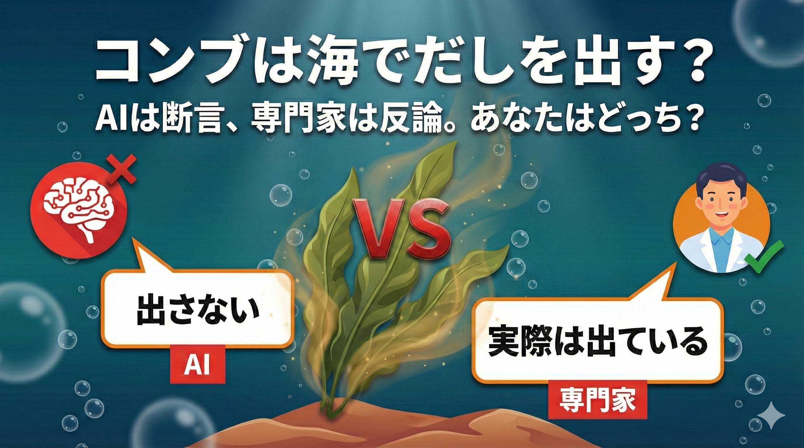 生きているコンブはだしを海に出しますか? この質問にグーグルのAIと毎日小学生新聞は全く違う答えを出しました。あなたならどちらを信じますか? そして後日、AIの回答は変わることがあるでしょうか。