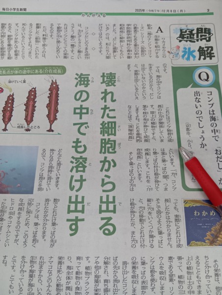 きょう(2025年12月8日)の「毎日小学生新聞」に、小学生からの質問に答えるページがあります。ほぼ毎週載る「疑問氷解」というコーナーで、きょうの質問は